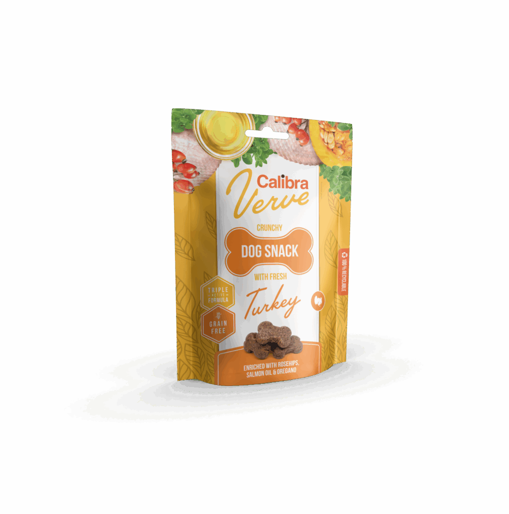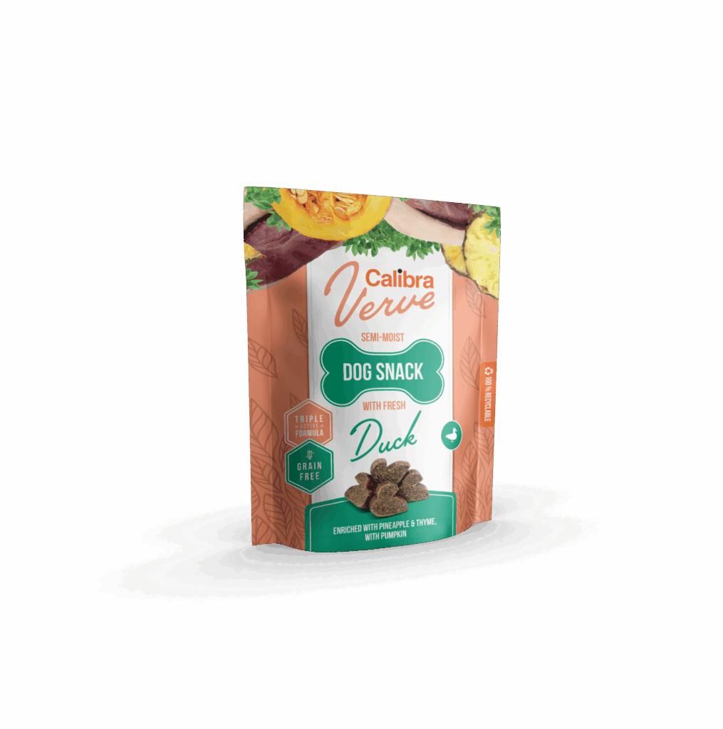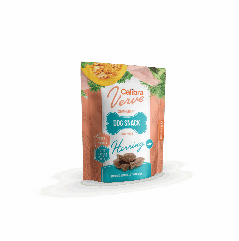 Przy treningu węchowym, sprawdzą się smaczki z serii Crunchy – chrupiące, bezzbożowe kąski oparte na różnorodnych źródłach białka. Dla seniorów, ale także dla szczeniaków (np. podczas nauki czystości), idealnym wyborem będą Calibra Dog Verve Semi-Moist Snack. To miękkie krokieciki wzbogacone słodkim ananasem, dynią oraz owocem dzikiej róży.